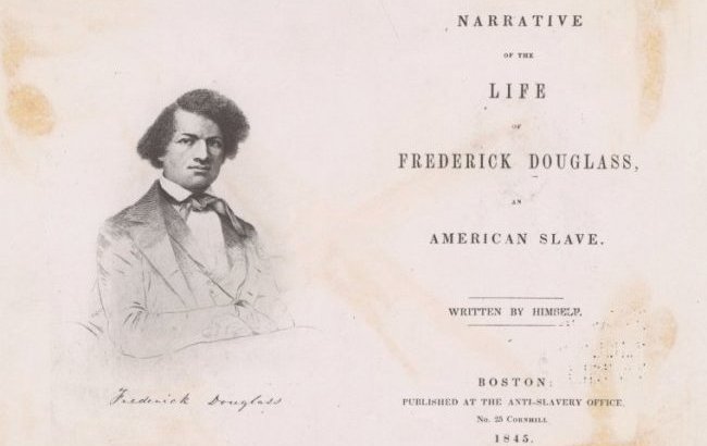 Frontispiece and title page of Narrative of the Life of Frederick Douglass, an American Slave.Boston: Published at the Anti-Slavery Office, 1845.