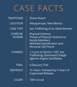 In July 2015, a grand jury indicted both Roach and Santillanes on one count of sex trafficking under 18 U.S.C. § 1591 (a)(1). However, the government made a deal with Santillanes: if she agreed to testify against Roach, the government would dismiss her charge. Santillanes agreed and cooperated with the government for the remainder of the case.
