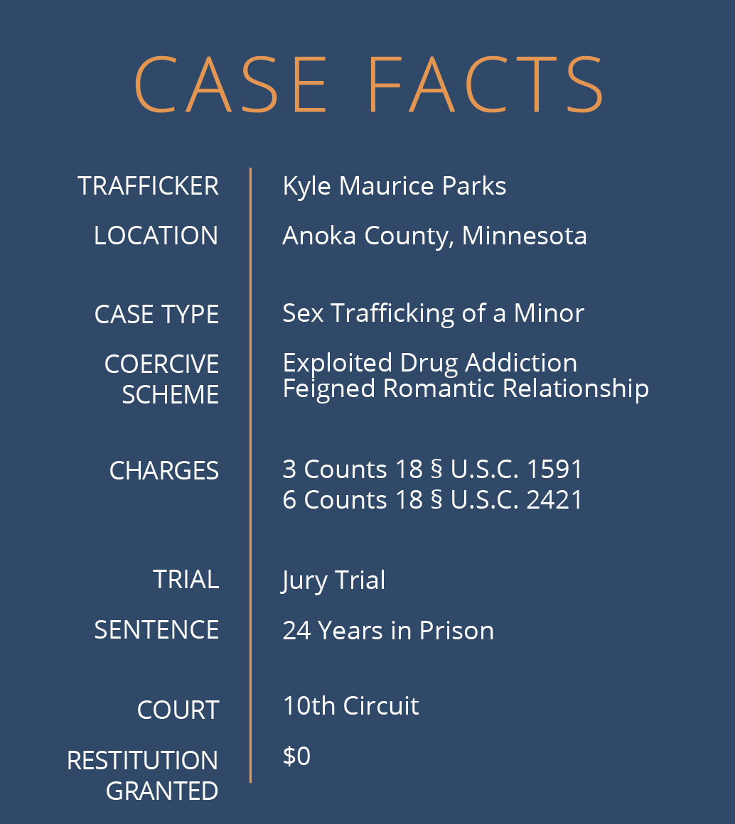 On December 1, 2015, seventeen-year-old T.S. ran away from a juvenile facility in Columbus, Ohio. She was standing at an intersection when a man approached her in a van. This man, Kyle Parks, told her she was beautiful, and he could give her anything she wanted if she went on dates for him.